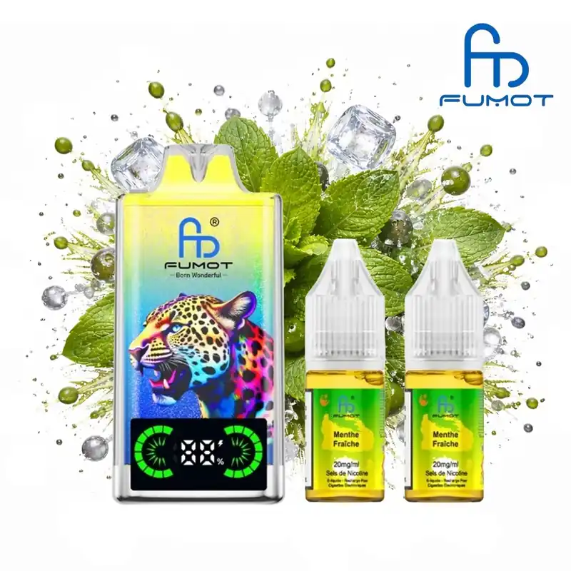 Un format grande capacité, une identité visuelle marquée et une fraîcheur mentholée parfaitement calibrée : la Puff Fumot Leopard 40K Menthe Fraîche 20mg impose son style.