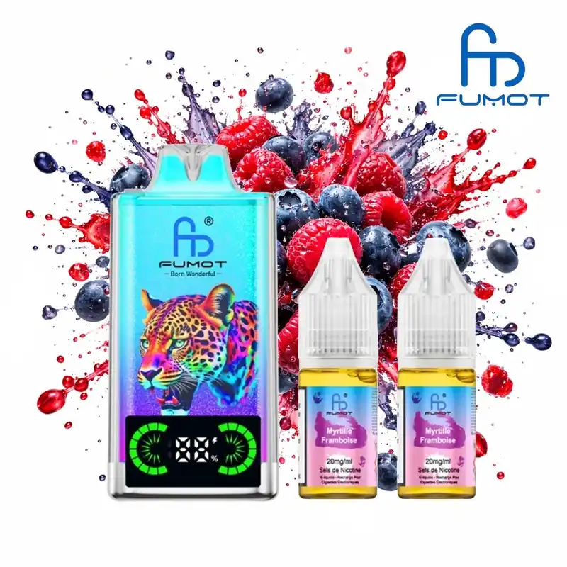 Grande autonomie, design léopard distinctif et duo fruité parfaitement équilibré : la Puff Fumot Leopard 40K Myrtille Framboise 20mg associe capacité et fraîcheur maîtrisée.