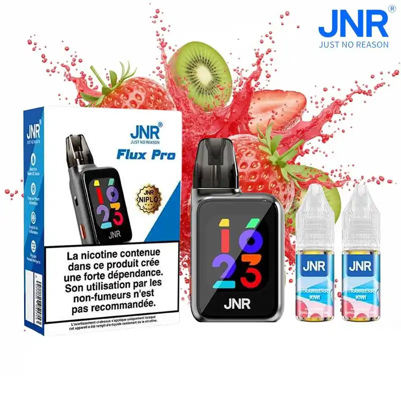 Un écran tactile, 32 000 bouffées, et une saveur fruitée pleine de peps : la puff JNR Flux Pro Strawberry Kiwi a de quoi faire rougir votre ancienne e-cig.