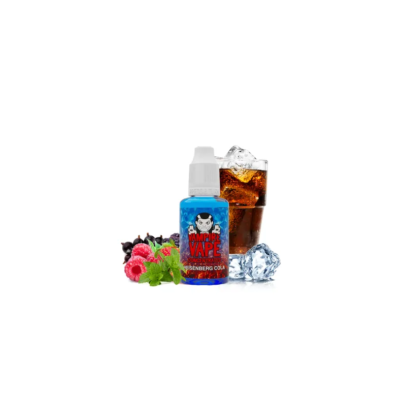 Le célèbre concentré Heisenberg revient en force avec une nouvelle version inédite, enrichie au cola ! Les arômes de fruits rouges glacés ayant fait le succès de ce produit anglais signé Vampire Vape, sont ici accompagnés d’un arôme de cola sucré, évoquant la célèbre boisson pétillante américaine !Le concentré Heisenberg Cola doit être dilué dans la base PG/VG de votre choix avant d’être consommé. Pour préparer au mieux votre e-liquide sur-mesure, la marque vous recommande un dosage de 10 à 15 % (pour une base PG/VG de 50/50).Une fois votre mélange effectué, il vous faudra patienter 2 à 3 jours, le temps pour les arômes de révéler pleinement toutes leurs nuances. Vous pourrez ensuite ajouter un ou plusieurs éventuels boosters de nicotine ou de CBD, à doser selon vos envies et vos besoins !