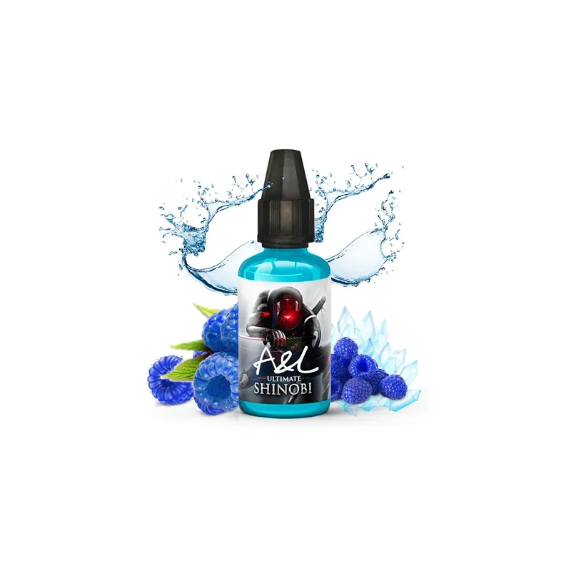 Découvrez le concentré Shinobi de A&;L , un arôme généreux saveur framboises bleues et frais à souhait.