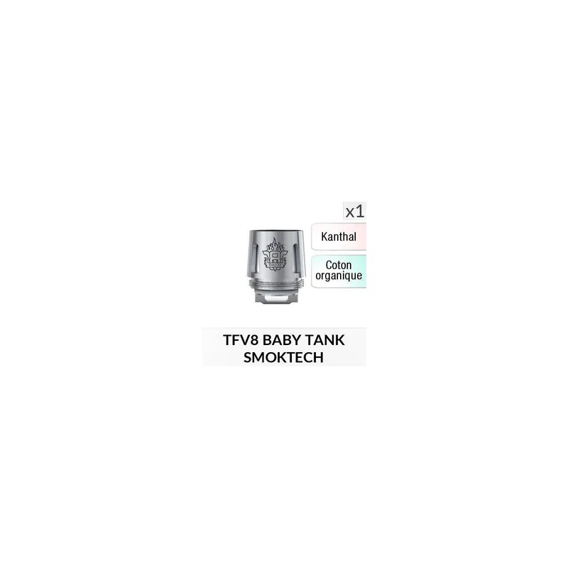 Une résistance de remplacement pour le TFV8 Baby et TFV8 Big Baby de chez Smoktech.Avec une quadruple résistance pour une impédance totale de 0.15 ? et une mèche en coton organique, les résistances V8 Baby-X4 offrent une puissance exceptionnelle avec un rendu des saveurs très rond en boucbe.Il est recommandé d’utiliser ces résistances avec des liquides épais (<50% de Propylène Glycol)Puissance idéale : 45 -60 W