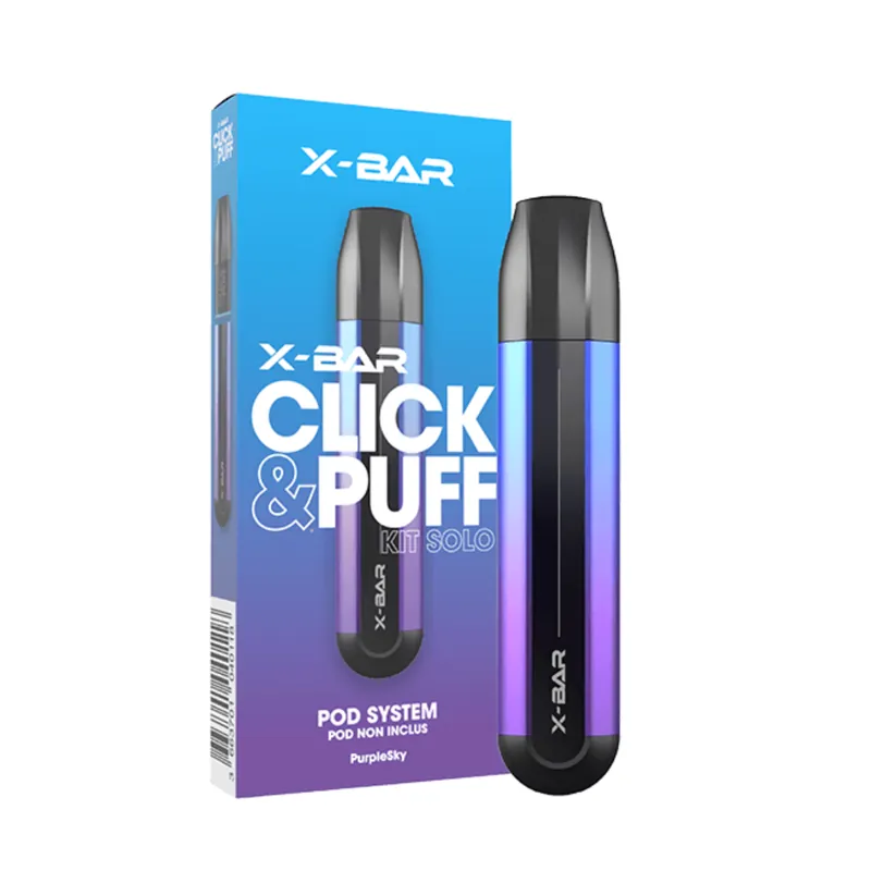 Opter pour la Click &; Puff Solo X-Bar (cartouche préremplie non incluse) c’est choisir une batterie de 500 mAh rechargeable par câble USB-C, à associer à n’importe quelle cartouche préremplie X-BAR compatible !