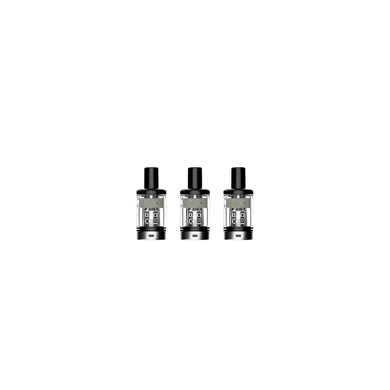 Disponibles en 0.6 et 1.2 ohm, ces cartouches présentent une généreuse contenance de 3.5 ml et se remplissent simplement sur le côté. Il vous suffira de retirer la cartouche usagée de la batterie, de soulever le cache latéral en caoutchouc de la cartouche neuve, de charger en e-liquide, de repositionner le cache et de placer la nouvelle cartouche au sommet de la batterie !
