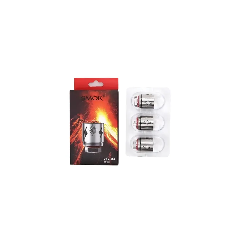 Ces résistances de remplacement sont dédiées au clearomiseur TFV12 de chez Smoktech. Ces résistances V12-Q4 quadruple coils de 0.15 ohm sont confectionnées à l’aide de kanthal et de coton organique. Celles-ci vous offrent des saveurs douces et rondes avec une belle production de vapeur.Il est recommandé d’utiliser ces résistances avec des liquides épais à haut taux de VG (moins de 50% de Propylène Glycol)Puissance idéale : 90-160  WProduit original Smok