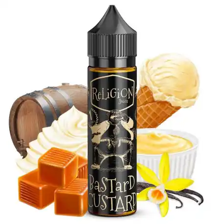 E-LIQUIDE BASTARD CUSTARD RELIGION JUICE Religion Juice est un fabricant français d’e liquide synonyme de qualité et de conformité CEE. Vous recevrez l’e-liquide Bastard Custard Religion Juice dans un flacon de 70 ml, composé de 0% de nicotine.Le eliquide Bastard Custard Religion Juice pour cigarette électronique est proposé en version boostée en arômes, dans un flacon à booster ne contenant pas de nicotine (0mg). Il vous sera possible d’en ajouter selon vos besoins et sans perte de saveur, grâce à un ou plusieurs boosters nicotinés (non inclus). Vous pourrez alors :· ajouter un booster de nicotine au flacon pour obtenir au total 60ml de e-liquide nicotiné à 3.3mg/ml,· mélanger le e-liquide avec deux boosters dans un nouveau flacon plus grand, pour obtenir 70ml de e-liquide à 5,7mg/ml. Note : Nous déconseillons de mélanger le e-liquide avec plus de deux boosters afin de préserver l’intensité de ses incroyables arômes. Base du e liquide Bastard Custard :30% : Propylène Glycol70% : Glycérine Végétale Informations :Conservation : stocké entre 4 et 16°CConforme au règlement 1334/2008/CEEComposition : Propylène Glycol, Glycérine végétale & Arôme alimentaire