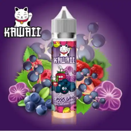 La marque Kawaii est un fabricant Français d’e liquide synonyme de qualité et de conformité CEE. Vous recevrez l’e-liquide Cassis Gang dans un flacon de 50 ml, composé de 0% de nicotine.Le eliquide cassis gang pour cigarette électronique est proposé en version boostée en arômes, dans un flacon à booster ne contenant pas de nicotine (0mg). Il vous sera possible d’en ajouter selon vos besoins et sans perte de saveur, grâce à un ou plusieurs boosters nicotinés (non inclus). Vous pourrez alors :Ajouter un booster de nicotine au flacon pour obtenir au total 60ml de e-liquide nicotiné à 3.3mg/mlMélanger le e-liquide avec deux boosters dans un nouveau flacon plus grand, pour obtenir 70ml de e-liquide à 5,7mg/ml. Note : Nous déconseillons de mélanger le e-liquide avec plus de deux boosters afin de préserver l’intensité de ses incroyables arômes. Base du e liquide Cassis Gang Kawaii :30% : Propylène Glycol70% : Glycérine Végétale Informations :Conservation : stocké entre 4 et 16°CConforme au règlement 1334/2008/CEEComposition : Propylène Glycol, Glycérine végétale & Arôme alimentaire