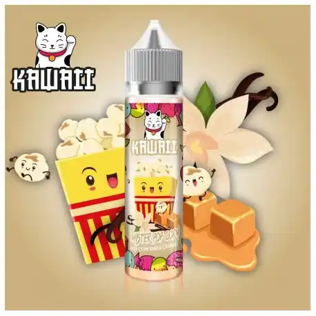 La marque Kawaii est un fabricant Français d’e liquide synonyme de qualité et de conformité CEE. Vous recevrez l’e-liquide Mister pop corn dans un flacon de 50 ml, composé de 0% de nicotine.Le eliquide Mister pop-corn pour cigarette électronique est proposé en version boostée en arômes, dans un flacon à booster ne contenant pas de nicotine (0mg). Il vous sera possible d’en ajouter selon vos besoins et sans perte de saveur, grâce à un ou plusieurs boosters nicotinés (non inclus). Vous pourrez alors :Ajouter un booster de nicotine au flacon pour obtenir au total 60ml de e-liquide nicotiné à 3.3mg/mlMélanger le e-liquide avec deux boosters dans un nouveau flacon plus grand, pour obtenir 70ml de e-liquide à 5,7mg/ml. Note : Nous déconseillons de mélanger le e-liquide avec plus de deux boosters afin de préserver l’intensité de ses incroyables arômes. Base du e liquide mister popcorn Kawaii :30% : Propylène Glycol70% : Glycérine Végétale Informations :Conservation : stocké entre 4 et 16°CConforme au règlement 1334/2008/CEEComposition : Propylène Glycol, Glycérine végétale & Arôme alimentaire
