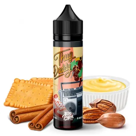 E-LIQUIDE THUG DADDY BIG PAPA Big Papa est un fabricant français d’e liquide synonyme de qualité et de conformité CEE. Vous recevrez l’e-liquide Thug Daddy Big Papa dans un flacon de 70 ml, composé de 0% de nicotine.Le eliquide Thug Daddy Big Papa pour cigarette électronique est proposé en version boostée en arômes, dans un flacon à booster ne contenant pas de nicotine (0mg). Il vous sera possible d’en ajouter selon vos besoins et sans perte de saveur, grâce à un ou plusieurs boosters nicotinés (non inclus).  Vous pourrez alors :·         ajouter un booster de nicotine au flacon pour obtenir au total 60ml de e-liquide nicotiné à 3.3mg/ml,·         mélanger le e-liquide avec deux boosters dans un nouveau flacon plus grand, pour obtenir 70ml de e-liquide à 5,7mg/ml.  Note : Nous déconseillons de mélanger le e-liquide avec plus de deux boosters afin de préserver l’intensité de ses incroyables arômes.    Base du e liquide Thug Daddy Big Papa :35% : Propylène Glycol65% : Glycérine Végétale Informations :Conservation : stocké entre 4 et 16°CConforme au règlement 1334/2008/CEEComposition : Propylène Glycol, Glycérine végétale & Arôme alimentaire