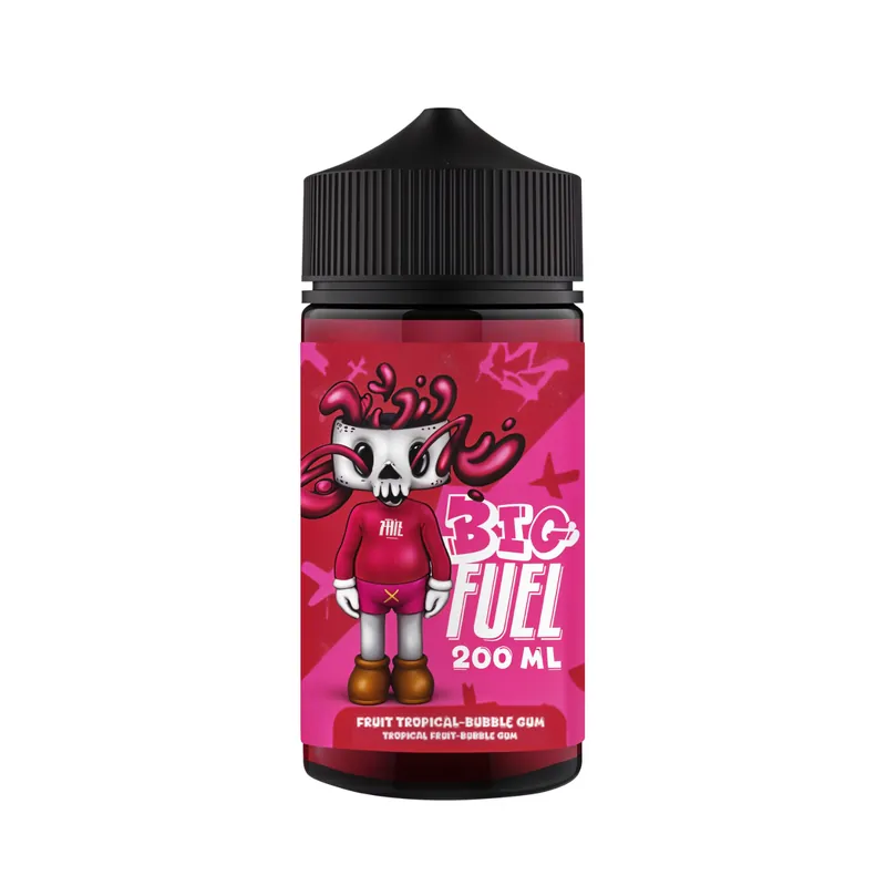 Fruit Tropical Bubble Gum 200 ml de la gamme Big Fuel de Maison Fuel offre une vape joyeusement exotique, où des fruits tropicaux juteux (mangue, ananas, passion…) s’allient à une note sucrée et régressive de bubble‑gum.