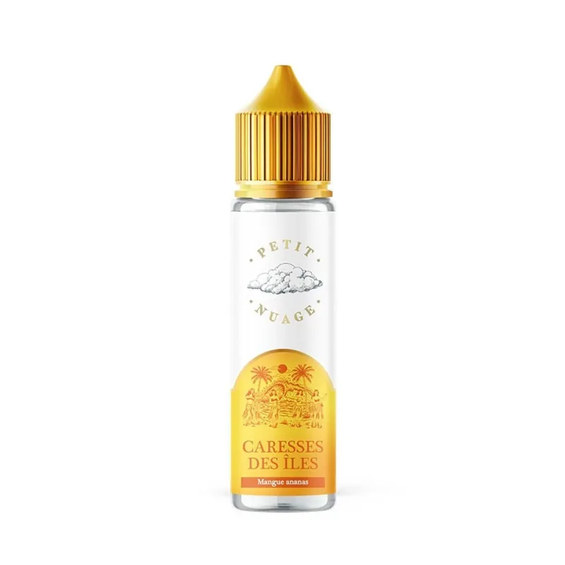 Caresses des Îles 50 ml est un e-liquide fruité signé Petit Nuage reprenant la saveur d’un smoothie à la mangue et à l’ananas.