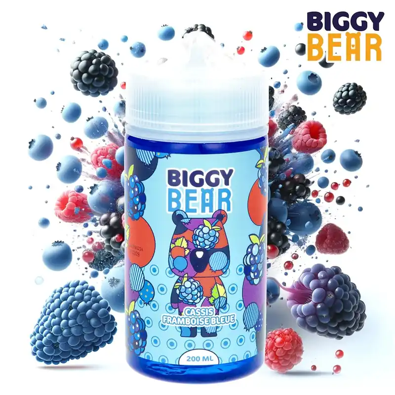 Plongez dans un univers de saveurs avec le e-liquide Cassis Framboise Bleue de Biggy Bear !
