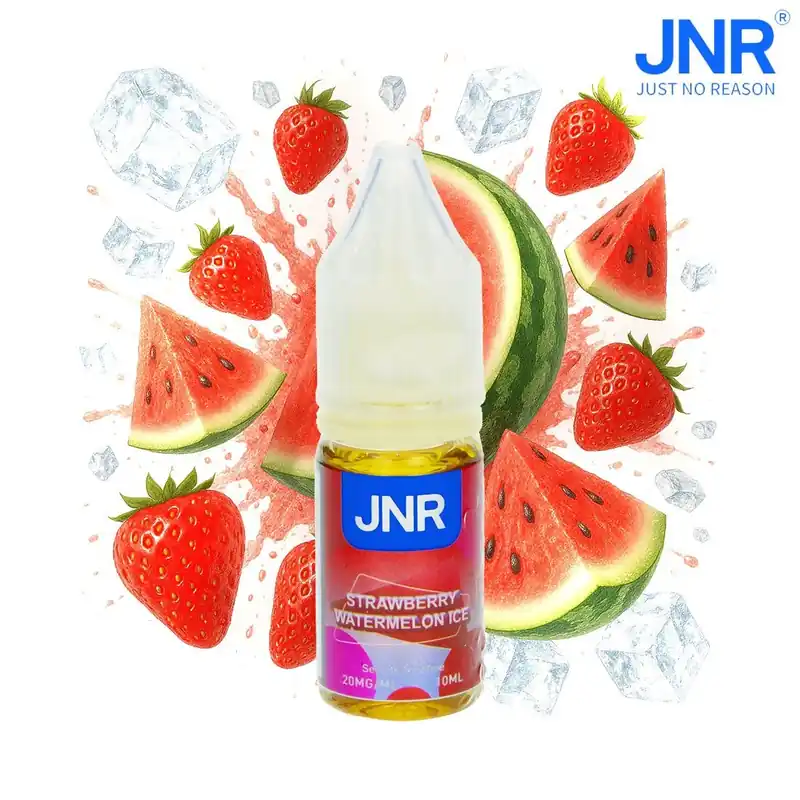 Le JNR Strawberry Watermelon Ice marie deux arômes incontournables : la fraise sucrée et la pastèque légère, relevées d’une note de fraîcheur qui prolonge agréablement la sensation en bouche.