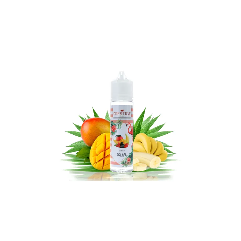 Exotique par Prestige Fruits, une ôde à l’exotisme !Délectez-vous d’un délicieux jus exotique à vaper composé d’une mangue juteuse et d’une banane bien mûre.Ce grand conditionnement vous permet d’obtenir une grande quantité d’eliquide pour un rapport qualité/prix imbattable !Vous pouvez ajouter à votre eliquide 50 ml un booster de nicotine ou de CBD si vous le souhaitez.Avec un ratio de 50/50 PG/VG, Exotique propose un équilibre idéal entre saveur et vapeur pour profiter d’un moment de détente vape de gourmet.Exotique de Prestige Fruits s’adapte très bien à des ecigarette pods ou des clearomiseurs en ionhalation indirecte type Zlide ou Zenith.