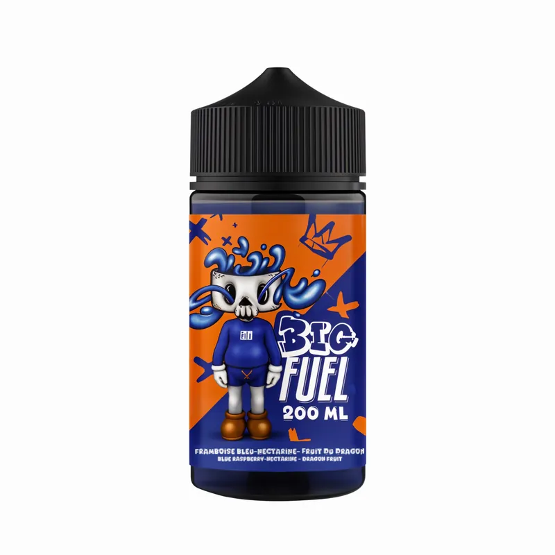 Framboise Bleue Nectarine Fruit du Dragon 200 ml de la gamme Big Fuel de Maison Fuel invite à une vape fruitée intense, où la framboise bleue acidulée se marie à la nectarine juteuse et à l’exotisme savoureux du fruit du dragon…