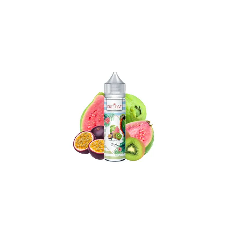 C’est un e-liquide aux arômes exotiques et acidulés que vous propose la marque Prestige Fruits avec son e-liquide Goyave Passion Kiwi 50 ml ! Un mix de fruits toniques et sucrés à la fois !