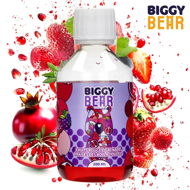E-LIQUIDE BIGGY BEAR FRUITS ROUGES GRENADE FRAISE DES BOIS ACIDULEE 200ML