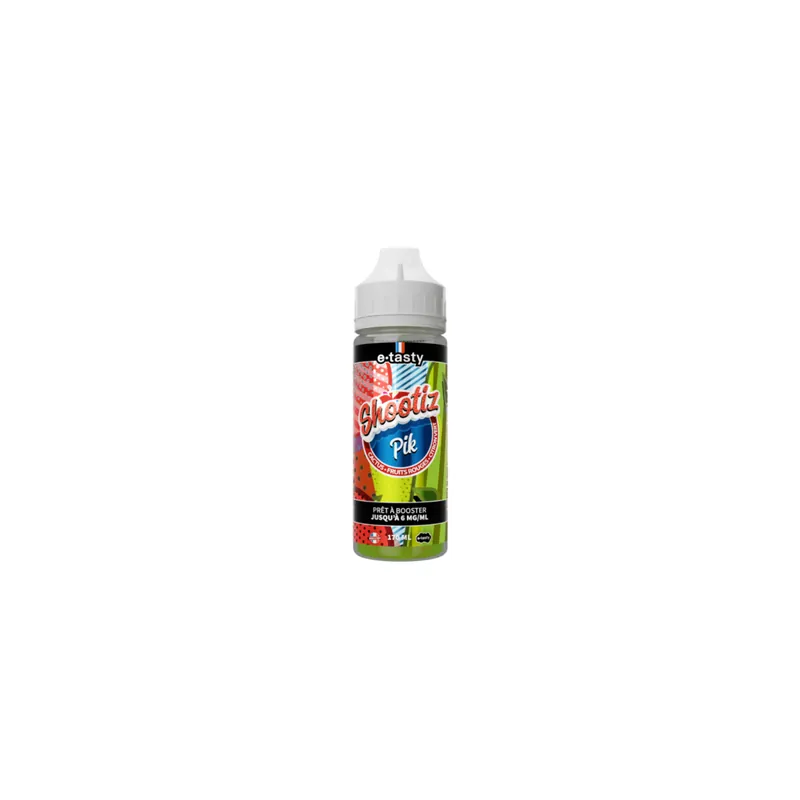 Le Pik 170 ml de la gamme Shootiz par E.Tasty est un e-liquide qui conjugue avec brio des saveurs exotiques et revigorantes. Ce mélange singulier allie la suavité des fruits rouges, l’acidité vive du citron vert et la fraîcheur subtile du cactus, proposant une expérience de vapotage harmonieuse et dynamisante !