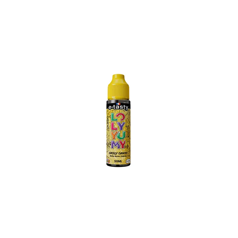Vous rappelez-vous le goût si délicieux des célèbres petits bonbons en forme de bananes recouvertes de sucre acidulé ? C’est ce que vous propose de vaper la marque E-Tasty avec son e-liquide Smily Candy 50 ml Nouvelle Version de la gamme Loly Yumy !