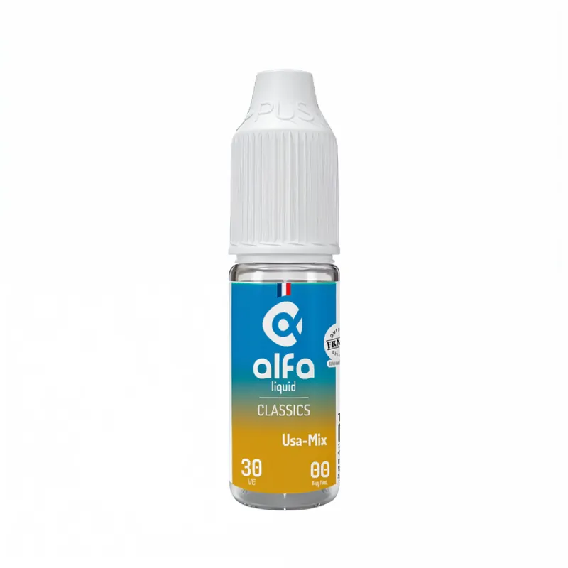 Le USA-MIX par Alfaliquid est un e-liquide aux arômes de classic blond agrémenté de notes de caramel ! À mi-chemin entre authenticité et gourmandise, cet e-liquide est idéal pour un sevrage tabagique réussi… la touche sucrée en plus !