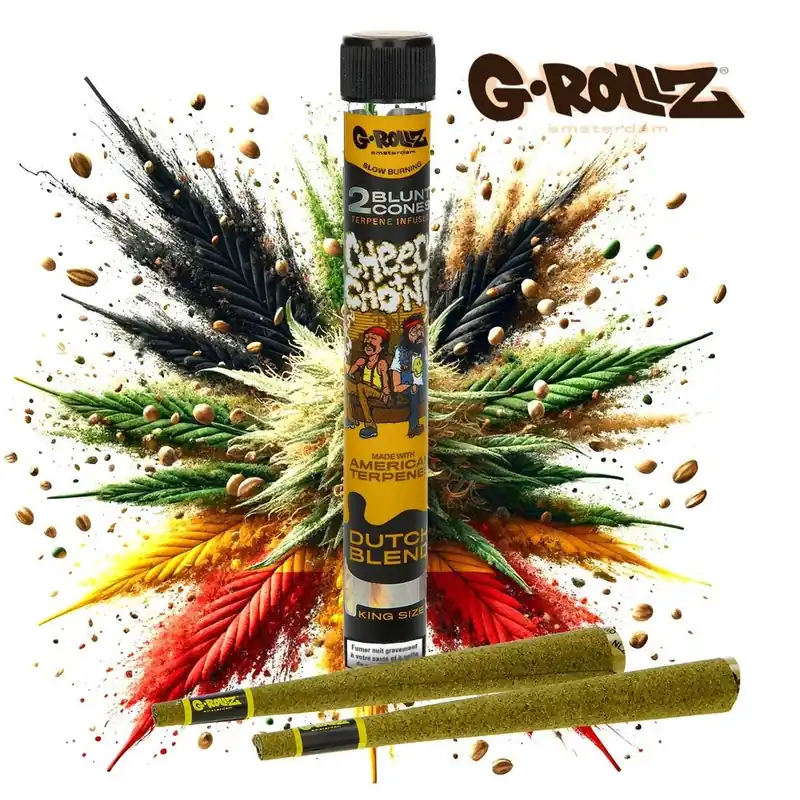 Découvrez les blunts infusés aux terpènes G-Rollz, nés d’une collaboration exclusive entre une réputée entreprise néerlandaise d’accessoires pour fumeurs et le duo iconique des années 70 et 80, Cheech et Chong, incarnant l’esprit de la culture hippie et de la liberté, tout en mettant en avant la consommation responsable de cannabis.Ces blunts se distinguent par une qualité inégalée, grâce à l’emploi de chanvre de haute qualité cultivé aux États-Unis. L’incorporation de cannabidiol (CBD) naturellement issu du chanvre offre une expérience sans effets psychoactifs, idéale pour ceux qui désirent bénéficier des avantages du cannabis sans THC, tout en légalité.