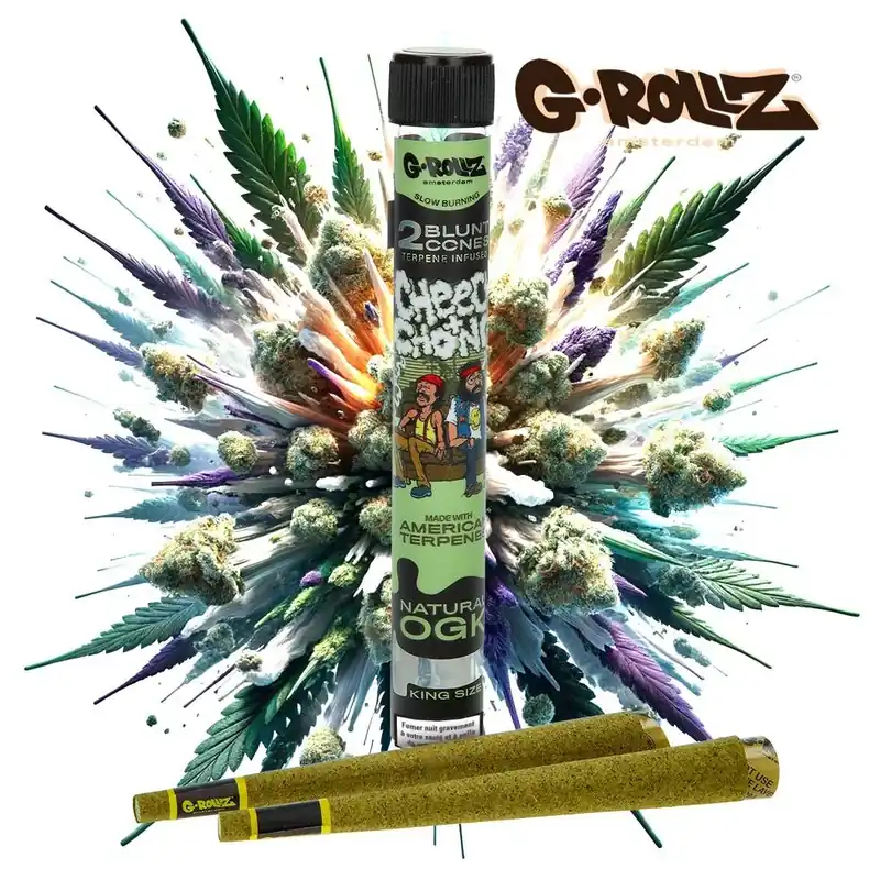 Découvrez les blunts infusés aux terpènes G-Rollz, nés d’une collaboration exclusive entre une réputée entreprise néerlandaise d’accessoires pour fumeurs et le duo iconique des années 70 et 80, Cheech et Chong, incarnant l’esprit de la culture hippie et de la liberté, tout en mettant en avant la consommation responsable de cannabis.Ces blunts se distinguent par une qualité inégalée, grâce à l’emploi de chanvre de haute qualité cultivé aux États-Unis. L’incorporation de cannabidiol (CBD) naturellement issu du chanvre offre une expérience sans effets psychoactifs, idéale pour ceux qui désirent bénéficier des avantages du cannabis sans THC, tout en légalité.