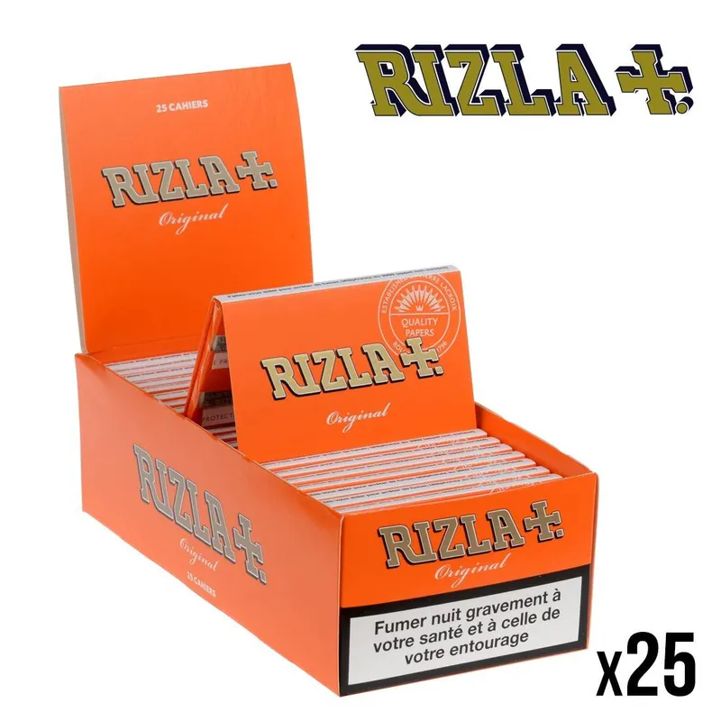 Boite de 25 carnets de feuilles à rouler Rizla orange. Soit 0€72 le carnet !!