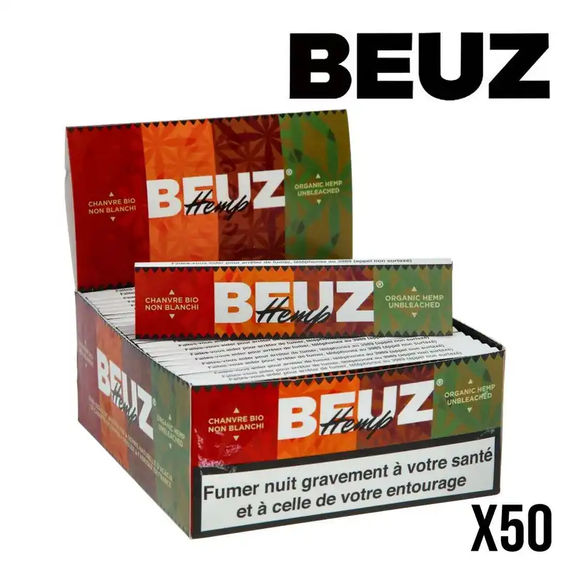 Optez pour un lot économique de 50 carnets de feuilles à rouler Beuz Slim Chanvre et profitez d’un papier fin de haute qualité !