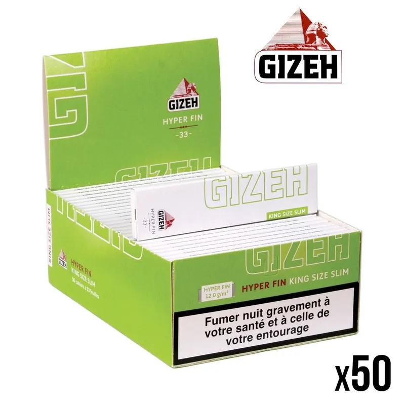 Adoptez la finesse ultime avec le GIZEH HYPER FIN SLIM X50, des feuilles à rouler conçues pour allier praticité et performance.