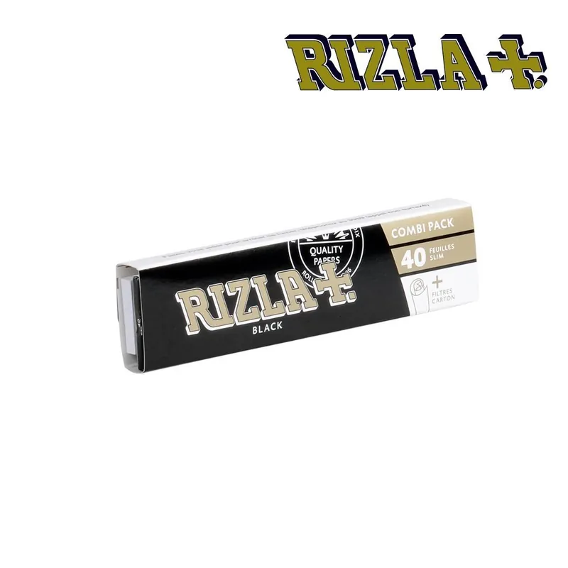 Le Rizla Black Combi Pack contient 40 feuilles au format slim et 40 filtres en carton perforé.