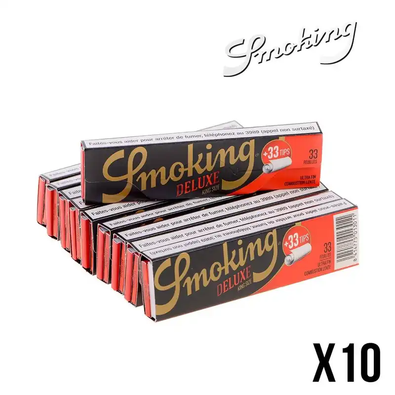 10 Carnets de 33 feuilles à rouler Smoking Deluxe Slim et 10 carnets de 33 filtres tips.