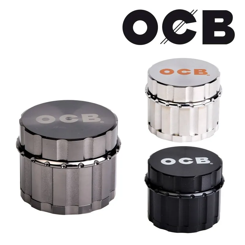 Ce grinder déchire sa race, avec son look de barillet de revolver, il est dispo en trois finitions au choix : argent, anthracite et noir mat, le logo OCB en gros sur le couvercle aimanté montrant qu’ils ne sont pas là pour blaguer !