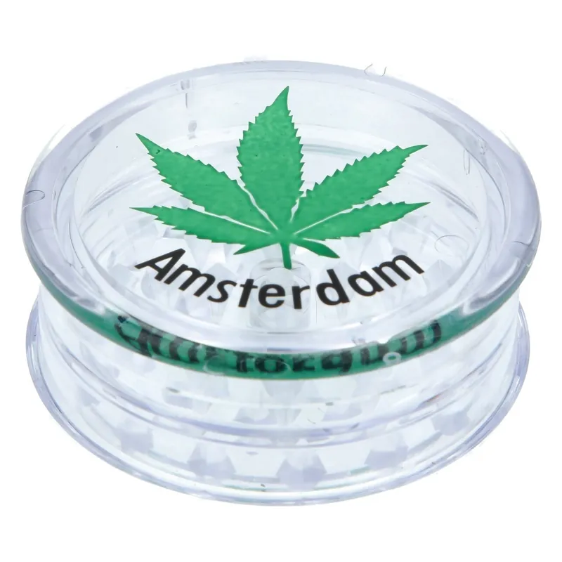 Le Grinder Acry Amsterdam Leaf 60mm se distingue par son corps en acrylique transparent laissant apparaître son contenu à tout moment. Son couvercle est décoré d’une feuille de chanvre stylisée accompagnée du nom « Amsterdam », un clin d’œil visuel qui mêle esthétique et identité urbaine. La transparence du matériau permet de suivre chaque étape de la mouture, sans avoir besoin d’ouvrir l’outil. Ce design simple mais fonctionnel rend ce grinder agréable à utiliser, tout en ajoutant une touche visuelle unique. Il s’adresse à celles et ceux qui apprécient autant le style que la praticité.