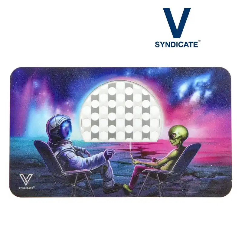 Le grinder Carte V-Syndicate Blunt Orbit est conçu pour se glisser facilement dans votre portefeuille grâce à son format carte de crédit standard.