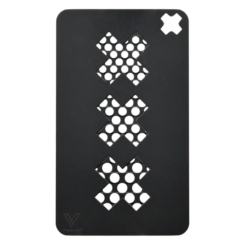 Le design du grinder V-Syndicate XXX Black fait référence aux trois croix emblématiques de la ville d’Amsterdam, symbolisant historiquement la protection de la ville et, depuis 1947, les valeurs de héroïsme, résolution et compassion.