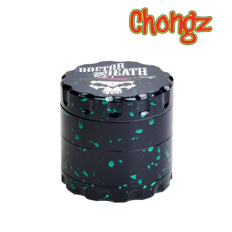 Chongz est vraiment inspiré ces dernières années, et ce grinder en est la preuve ! Noir, il semble avoir été aspergé d’une » substance verdâtre des plus…visqueuses ? Le couvercle arbore la figure effrayante du « Dr. Death », avec son chapeau haut de forme.
