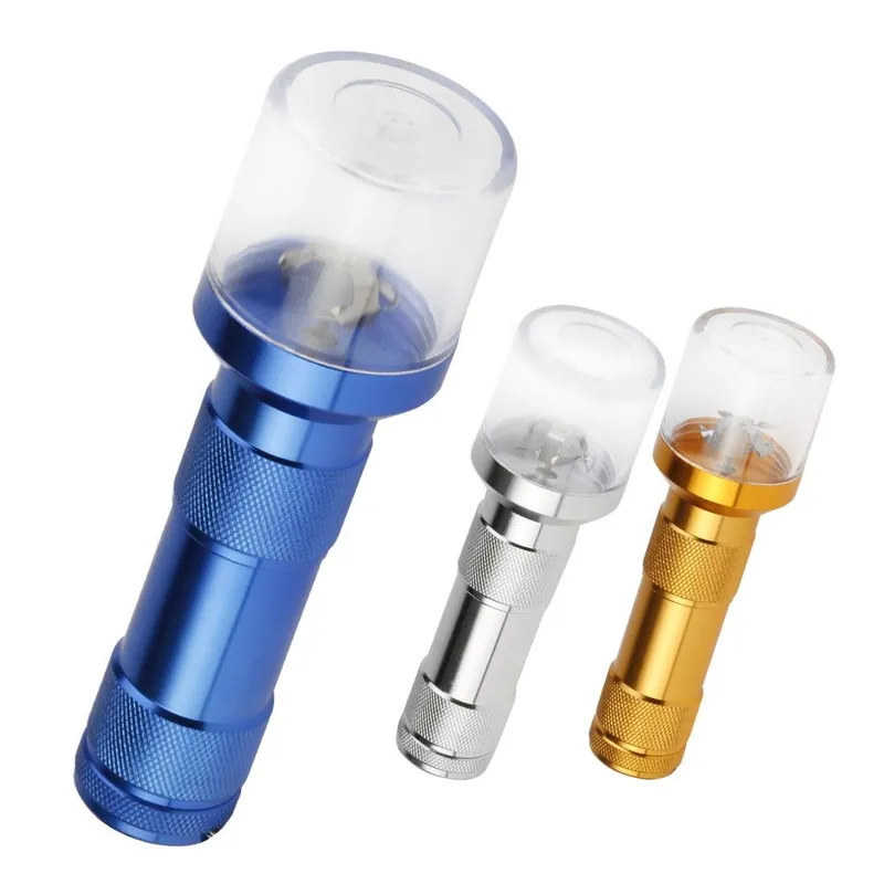 Pour les plus fainéant voici le grinder électrique en aluminium. Placez votre tabac dans le couvercle (ne pas dépasser un tiers), refermez, mettez le grinder tête vers le bas, secouez et c’est prêt !