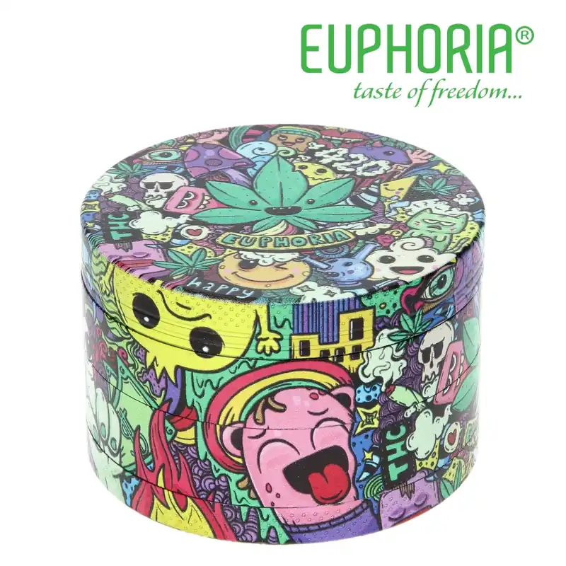 Avec son design unique, le grinder Euphoria Whimsical se distingue par ses motifs ludiques et ses personnages colorés.