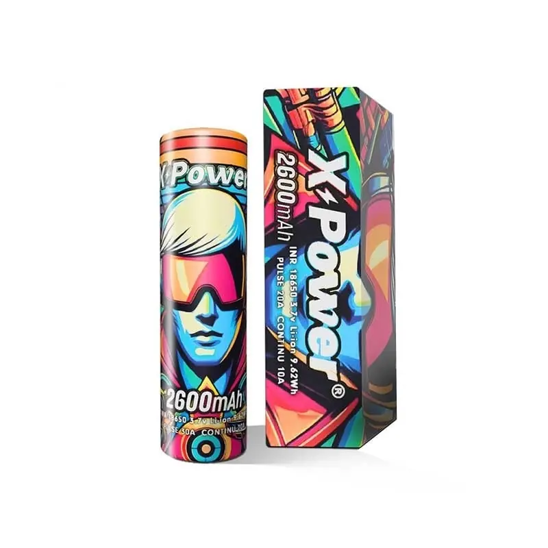 Accu 18650 – 2600 mAh – X Power est un accu rechargeable avec un courant de décharge en continu de 20A et un courant de décharge en pointe de 30A. Idéal pour les personnes recherchant autant la puissance que l’autonomie, car il offre une capacité de 2600 mAh. Sa chimie est INR pour Ion Lithium, Nickel et Ronds.Avec une tension nominale de 3.7 volts, l’accu 18650 2600 mAh est compatible avec les mods et box acceptant ce format d’accu.Il assure une très bonne longévité dans le temps.