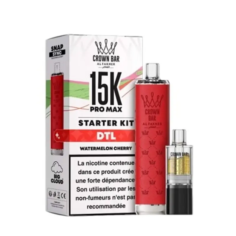 Découvrez la Puff Crown Bar Pro Max 15 K, une puff nouvelle génération signée Al Fakher Crown Bar, développée par le célèbre fabricant Al Fakher, référence incontournable dans l’univers de la chicha et du vapotage. Ce produit combine performance, autonomie et intensité aromatique pour offrir une expérience de vape incomparable.Pensée pour les amateurs de grosses sensations en tirage DTL, cette puff vous accompagne jusqu’à 15 000 bouffées grâce à sa grande capacité en liquide et sa batterie rechargeable. Un format pratique, performant et parfaitement adapté aux adeptes de vape en quête de qualité.