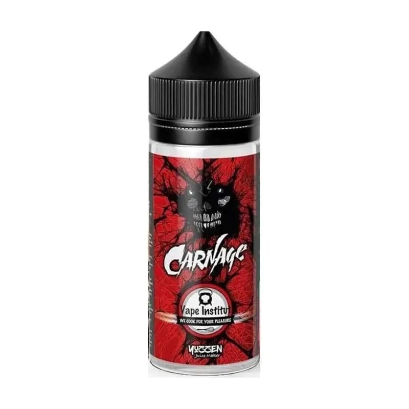 Le e-liquide Carnage a un goût de fraise, cassis et fruits exotiques, contient 25 % de propylène glycol et 75 % de glycérine végétale, ne contient pas de nicotine et est conditionné en flacon de 100 ml.Base du e-liquide Vape institut – 100 ml