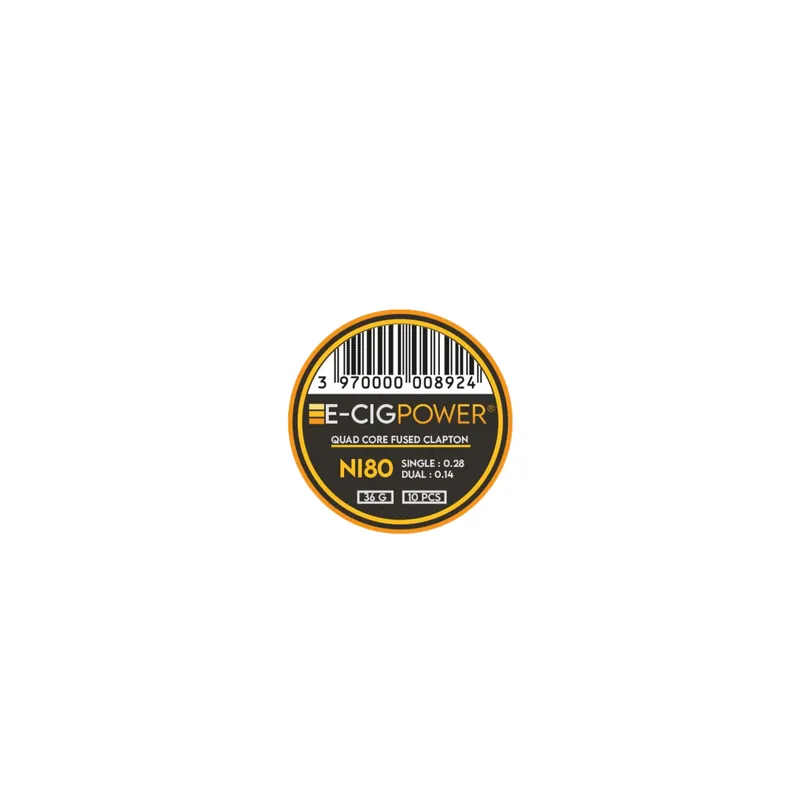 Les coils Ni80 Quad Core Fused Clapton signés E-Cig Power vous permettent de réaliser vos montages en toute simplicité ! Ce pack contient 10 coils en Ni80 quad core fused clapton de 36Ga de haute qualité et prêts à monter, conçus pour améliorer votre expérience de vapotage.