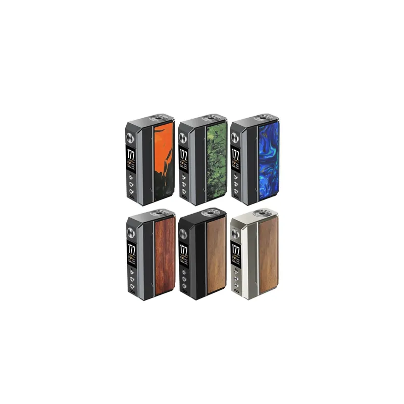 Puissant et capable d’accueillir tout atomiseur d’un diamètre maximal de 26 mm, la Drag 4 conserve ce format rectangulaire et son look affirmé mais se pare cette fois-ci de matériaux de la plus haute qualité, à l’instar de ses portes déclinées en résines naturelles colorées ou en essences de bois raffinés. Cette box mod plaira sans aucun doute aux amateurs de cigarettes électroniques offrant une excellente prise en main et aux finitions irréprochables !