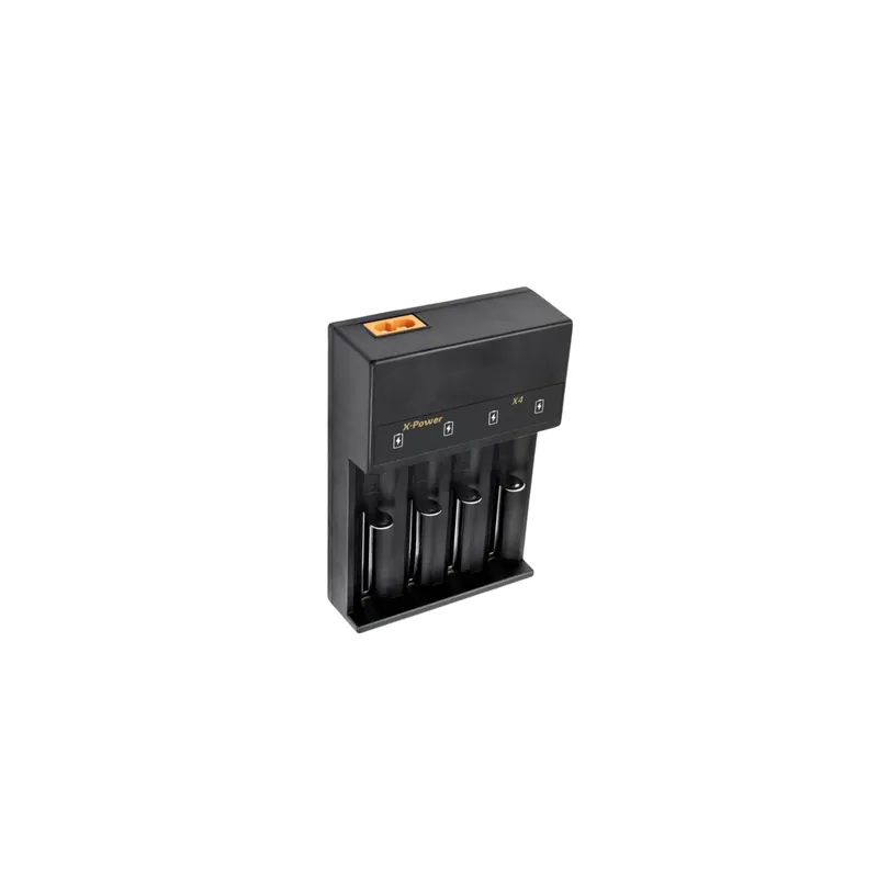 Le chargeur X Power X4 vous permet de recharger simultanément jusqu’à quatre accus de type IMR ou INR, grâce à ses quatre emplacements indépendants. Chaque slot est équipé d’un indicateur LED pour suivre en temps réel le niveau de charge de vos batteries.