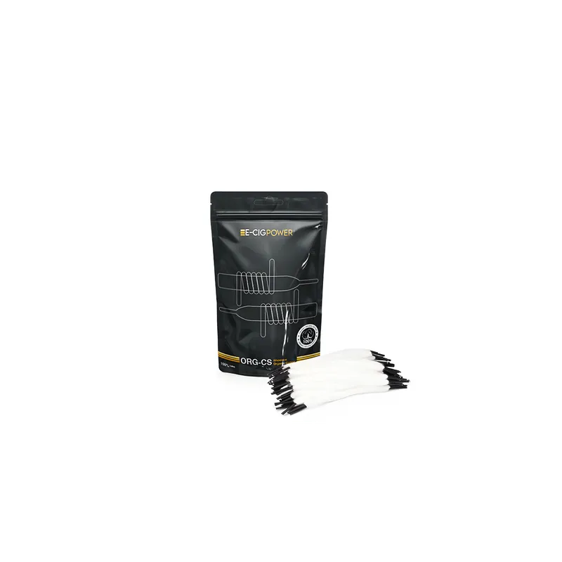 Fabriqués à partir de coton biologique, les Shoelace Organic Cotton ORG CS de la célèbre marque E-Cig Power sont garantis sans blanchiment et sans pesticides, offrant une expérience de vapotage plus saine.