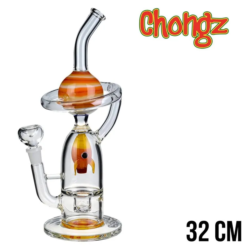 Ce bang est tout simplement exceptionnel et ça se voit au premier coup d’œil. Tout droit sorti de la galaxie Chongz, cette pièce de verre est quasiment une oeuvre d’art ! En sa base, son socle plat possède une partie colorée puis vient le premier percolateur… Ensuite vient la fusée en partance pour cette fameuse planète et son anneau.