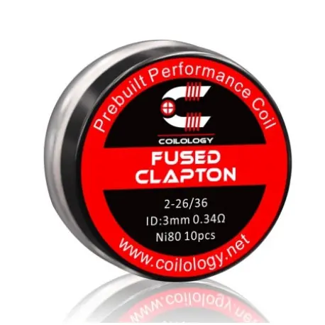 PACK 10 FUSED CLAPTON COILOLOGY Les résistances pré montées Fused Clapton de la marque Coilology vous apporteront une puissance plus rapide et une production de vapeur maximale ! La boîte de coils NI80 en 0.34 ohm ou 0.46 ohm vous permettra de confectionner en toute confiance vos résistances prémontées.Coilology est une marque chinoise spécialisée en coil et en fil résistif Wire pour atomiseurs reconstructibles RDA et RTA. Fiables et résistants, les prebuilt coils Clapton vous surprendront par leur longévité. Ces résistances NI80 sont destinées aux vapoteurs expérimentés.