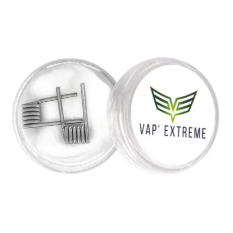 Résistances Pré-Montées – Prêtes à être installées et cotonnées Boîte de 2 coils Matériau : KA1 Tressage : Fused MTL Valeur résistive: 0.85 ohm par coil Fabriqué par Vap’Extrême