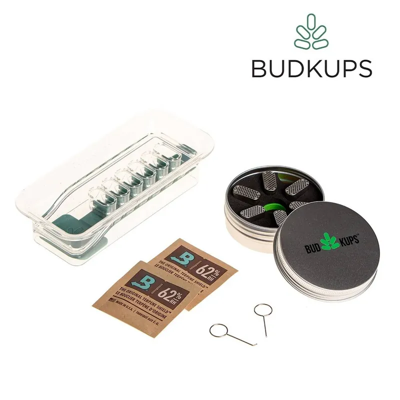 - 6 capsules Budkups incluses dans leur boite Pocket Humidor