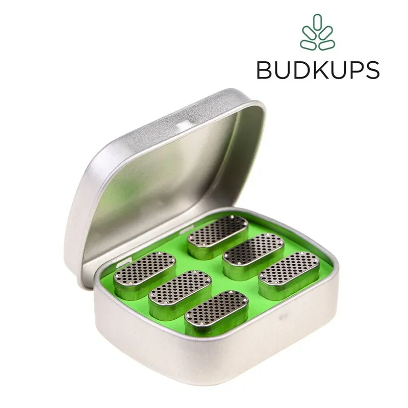 Vous pouvez préparer à l’avance jusqu’à 6 capsules Bud Kups remplies de vos herbes préférées et les stocker bien précieusement dans votre Bud Case.